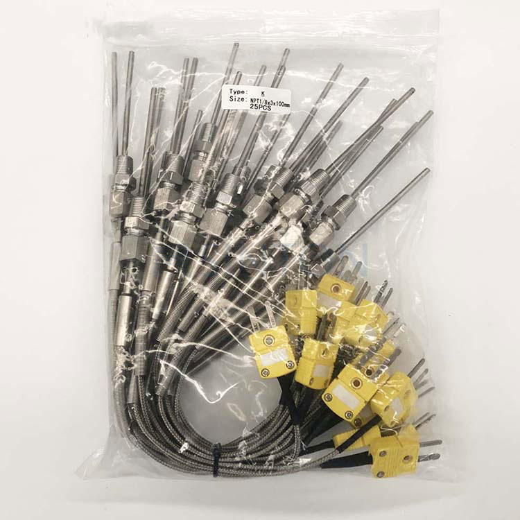 Závitové připojení: Závitová konstrukce usnadňuje upevnění termočlánku v zařízení nebo potrubí, zajišťuje stabilní instalaci a těsné utěsnění.